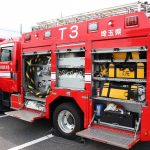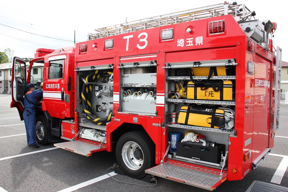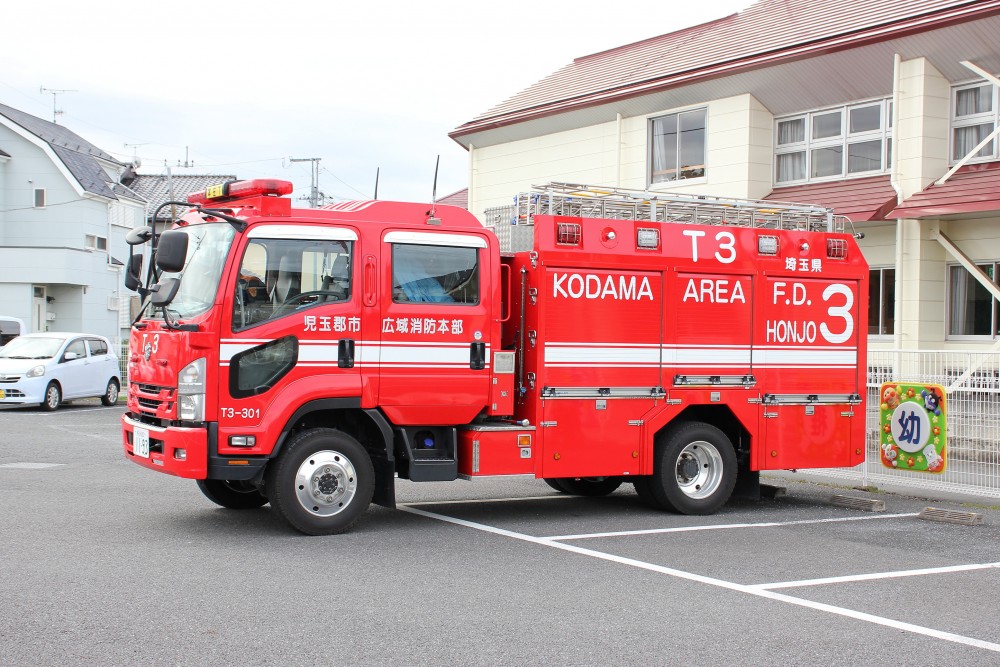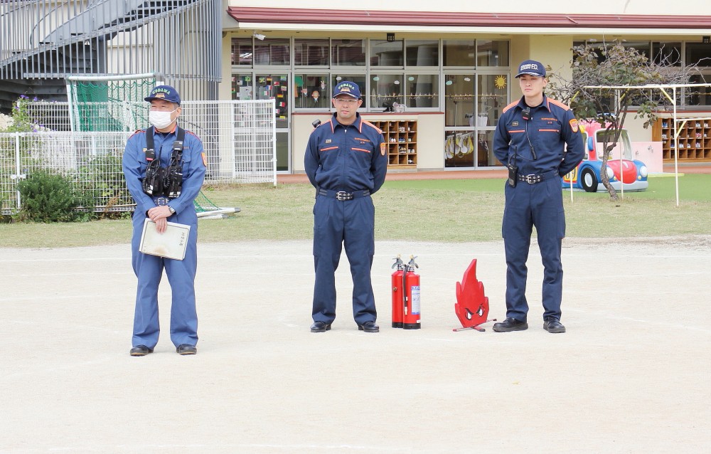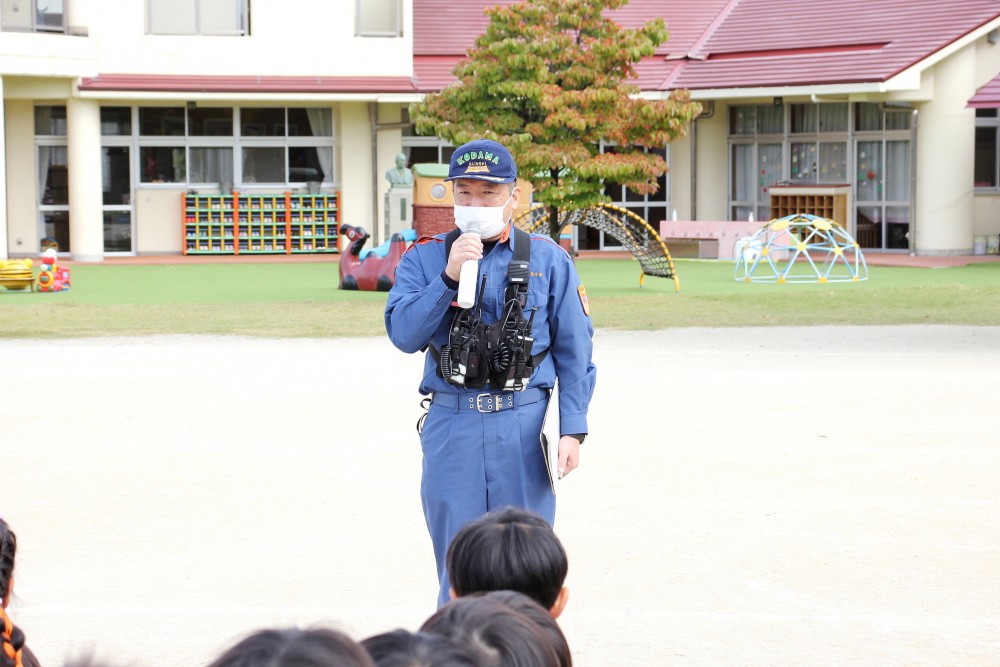 消防署のお兄さんに ご指導いただき、避難訓練を行いました。
